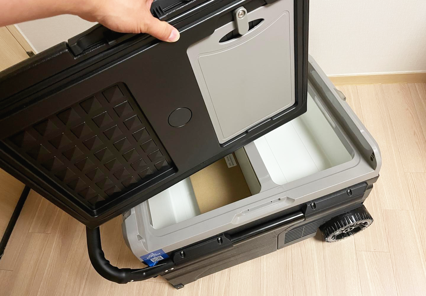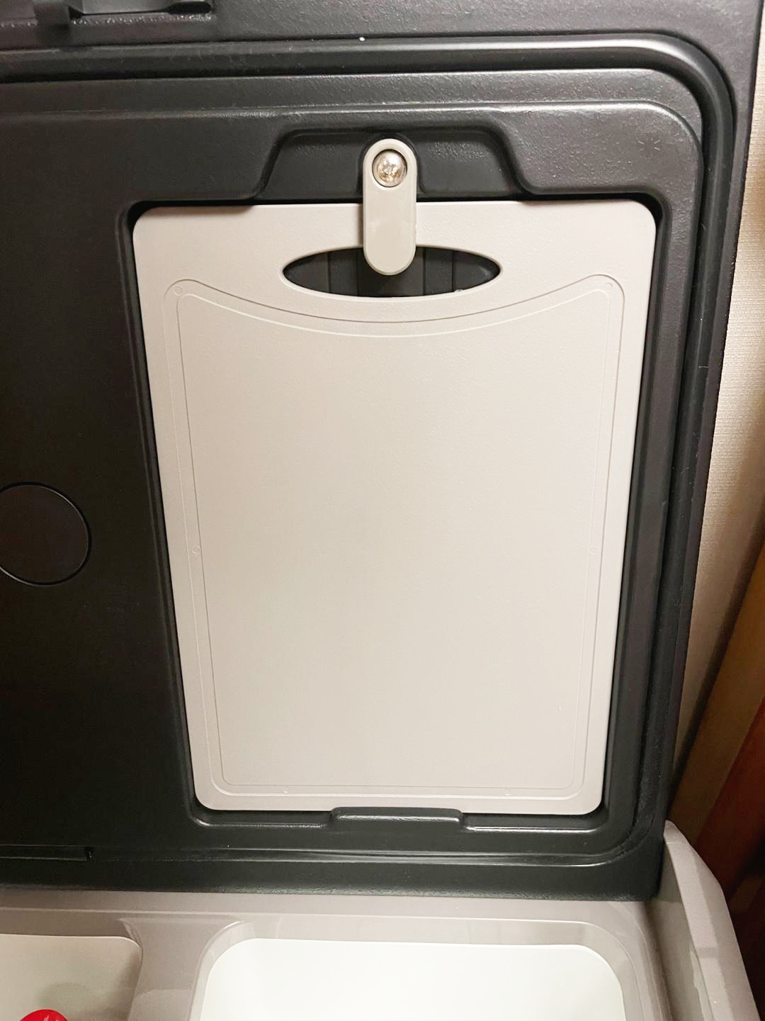 알피 쿨 뚜껑 안쪽에 보면 도마가 포함되어 있는데 위쪽의 레버를 살짝 돌리면 도마가 빠지고, 빠진 도마는 쿨러 상단의 홈 부분에 두고 사용할 수 있도록 디자인되어 있답니다~ㅎㅎ 중국 제품이라고 무시할 수 없는 게 비싼 해외 제품들이나 국내 제품들도 없는 기능이기에 이런 부분까지 신경 써서 제작했다는 것 자체도 큰 구매력을 불러올 수 있다고 생각해요~ㅎㅎ