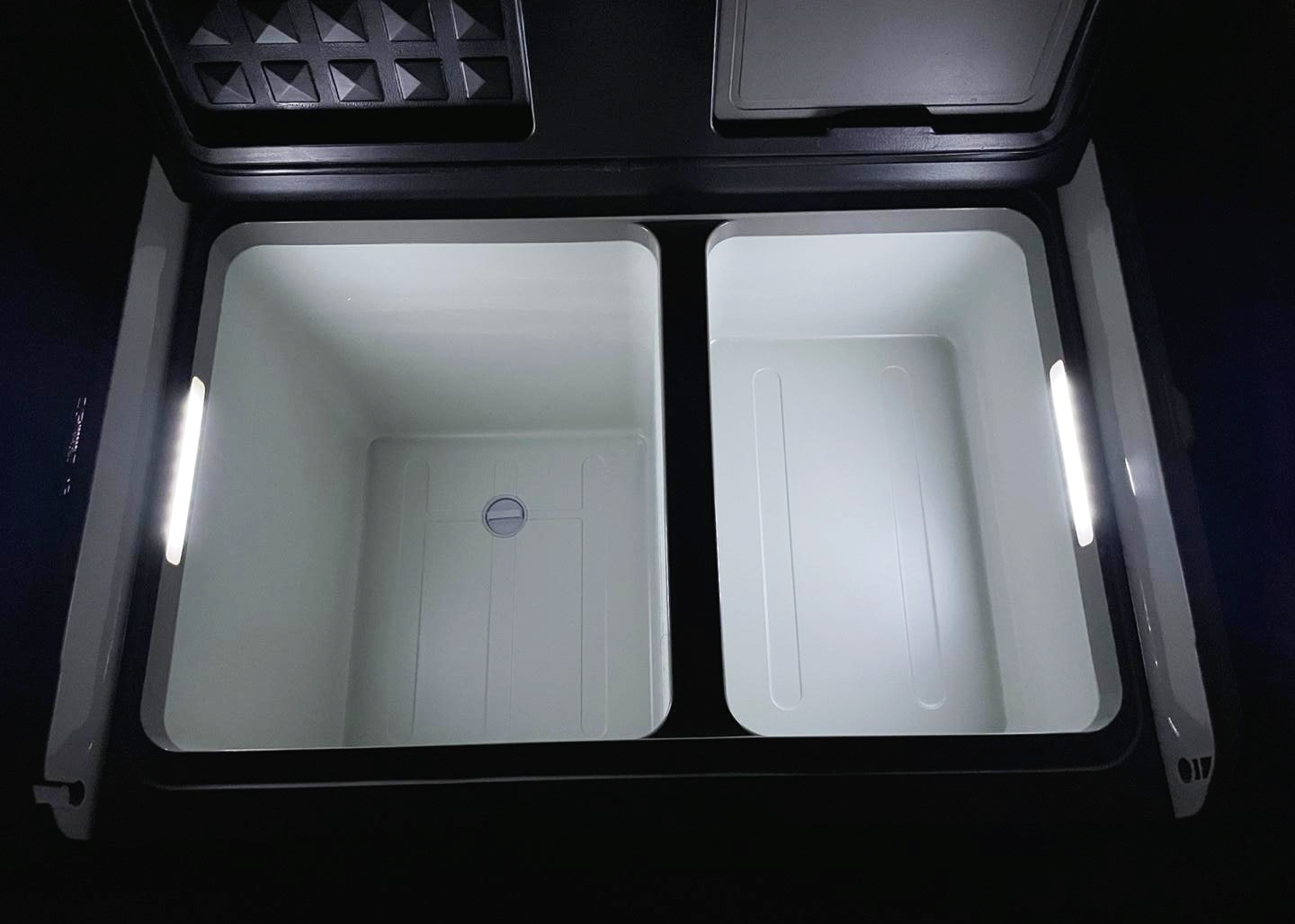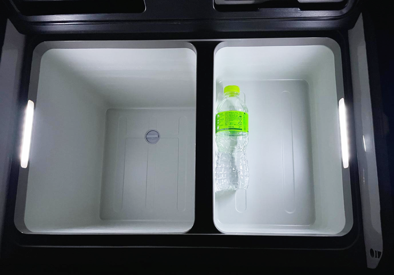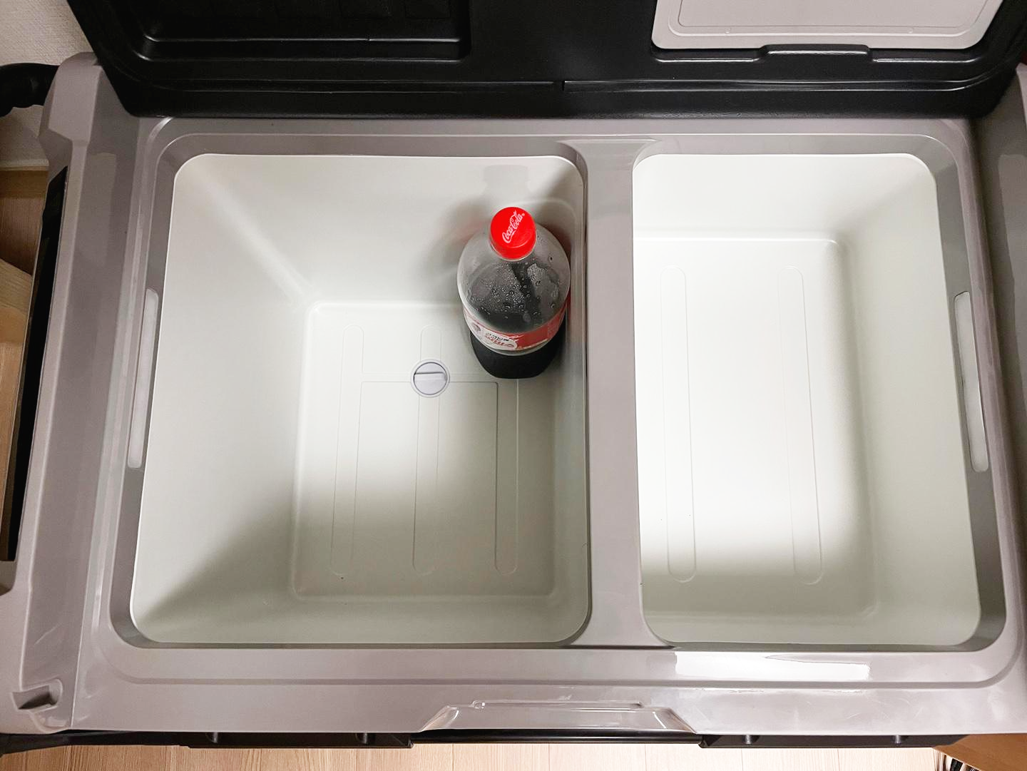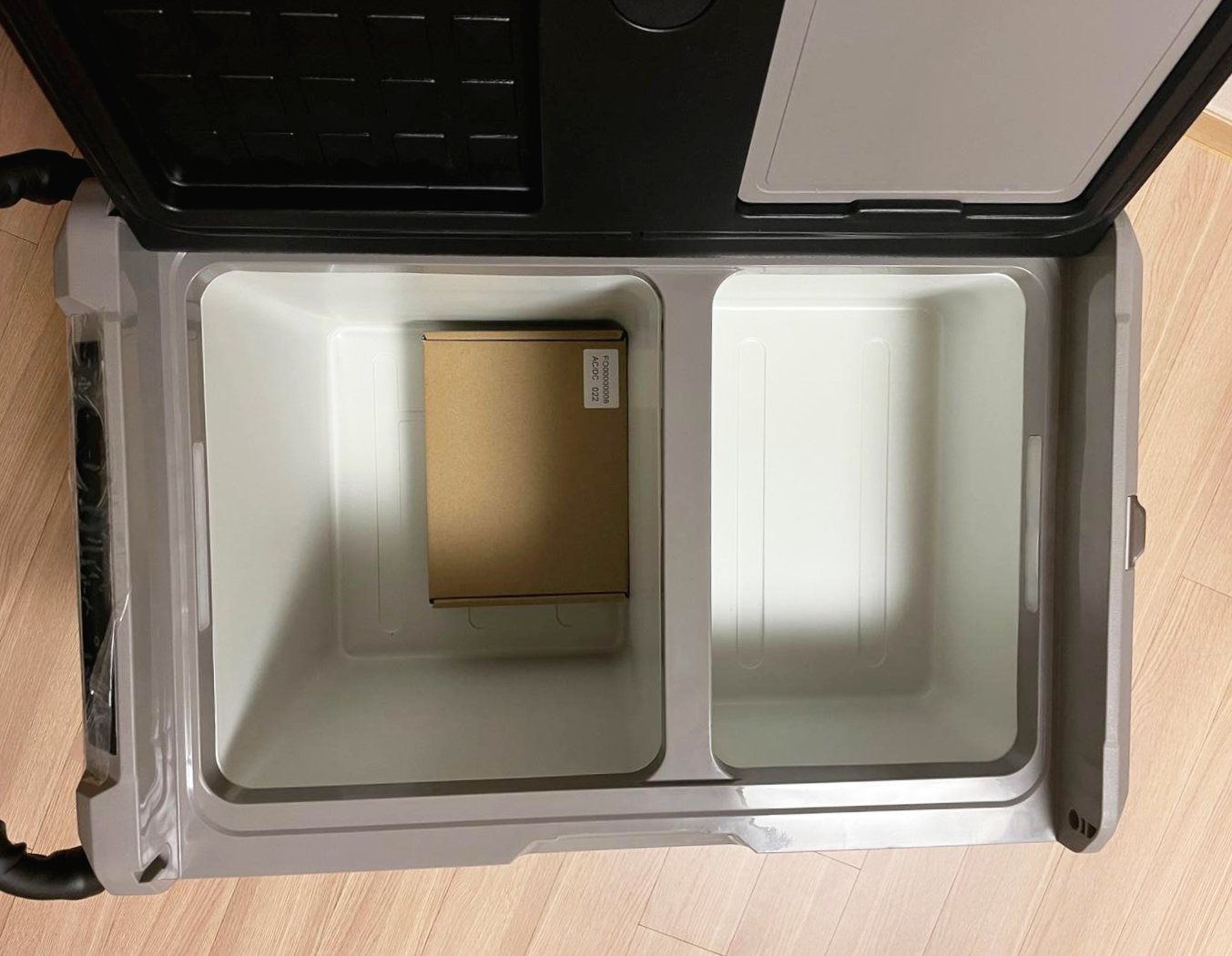 사진 촬영을 하는 타이밍에 집에 2리터 생수통이 없어서 1.5리터 콜라로 수납을 해보았는데요~ 사진처럼 딱 세워서 딱 들어갑니다~ 냉장고의 경우 음료, 물, 주류 등이 새워서 수납되지 않을 경우 캠핑 중간중간 가장 많이 찾는 음료나 물이 누워서 보관해하는 냉장고의 경우 다른 음식 팩 사이를 휘저어가며 찾아본 분들이라면 공감하실만한 이유이기도 합니다~ 그리고 필자는 한번 얼어서 터진 음료 때문에 냉동고 안쪽에 난리가 나적도 있기에..ㅠ 아주 바람직한 수납이라고 할 수 있지요 ㅎㅎ