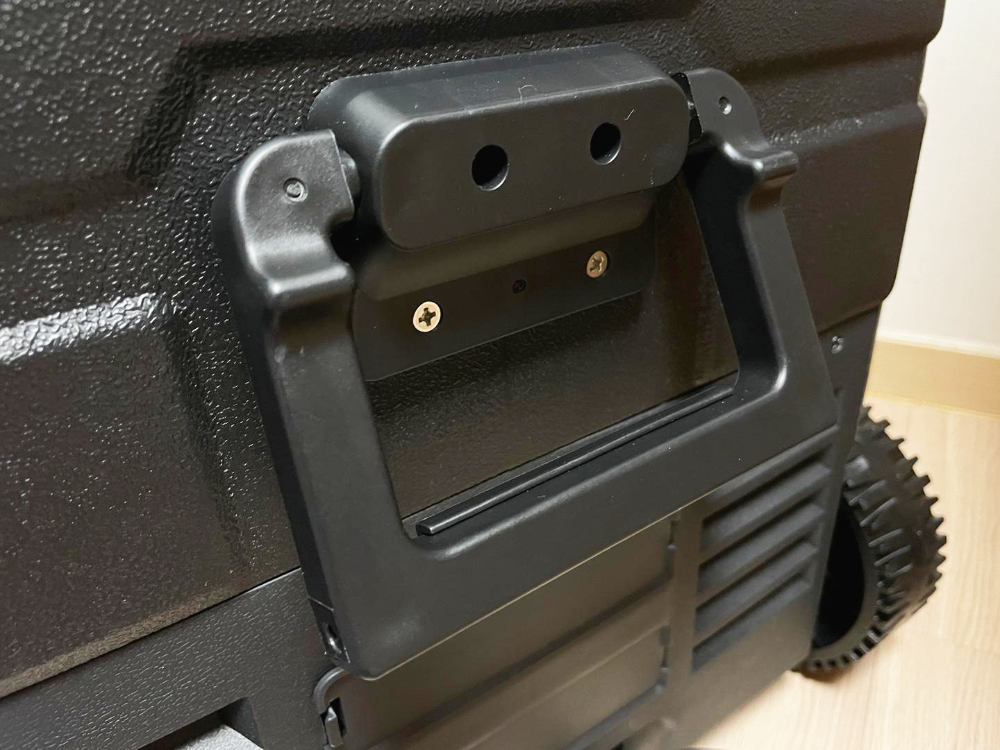 손잡이 양쪽 아래쪽 부분에 위치판 고정 버튼을 누르고 손잡이를 앞으로 쭈욱~하고 빼주시면 되는데 '딸깍' 소리가 날 때까지 당겨주시면 됩니다~ :) 별거 아니지만, 손잡이랑 바퀴 덕분에 이 무거운 냉동고를 옮기는 행위가 매우 편해진답니다~ 기존에 사용했던 코 보쿨 냉장고 도 너무너무 잘 사용했지만, 무거운 무게 덕분에 나른다고 고생 좀 했었거든요~ 알피 쿨 역시 트렁크에 싣고 내리는 과정은 무거워서 버겁지만, 이동할 때만큼은 정말 편리한 캠핑 냉장고입니다~ :)