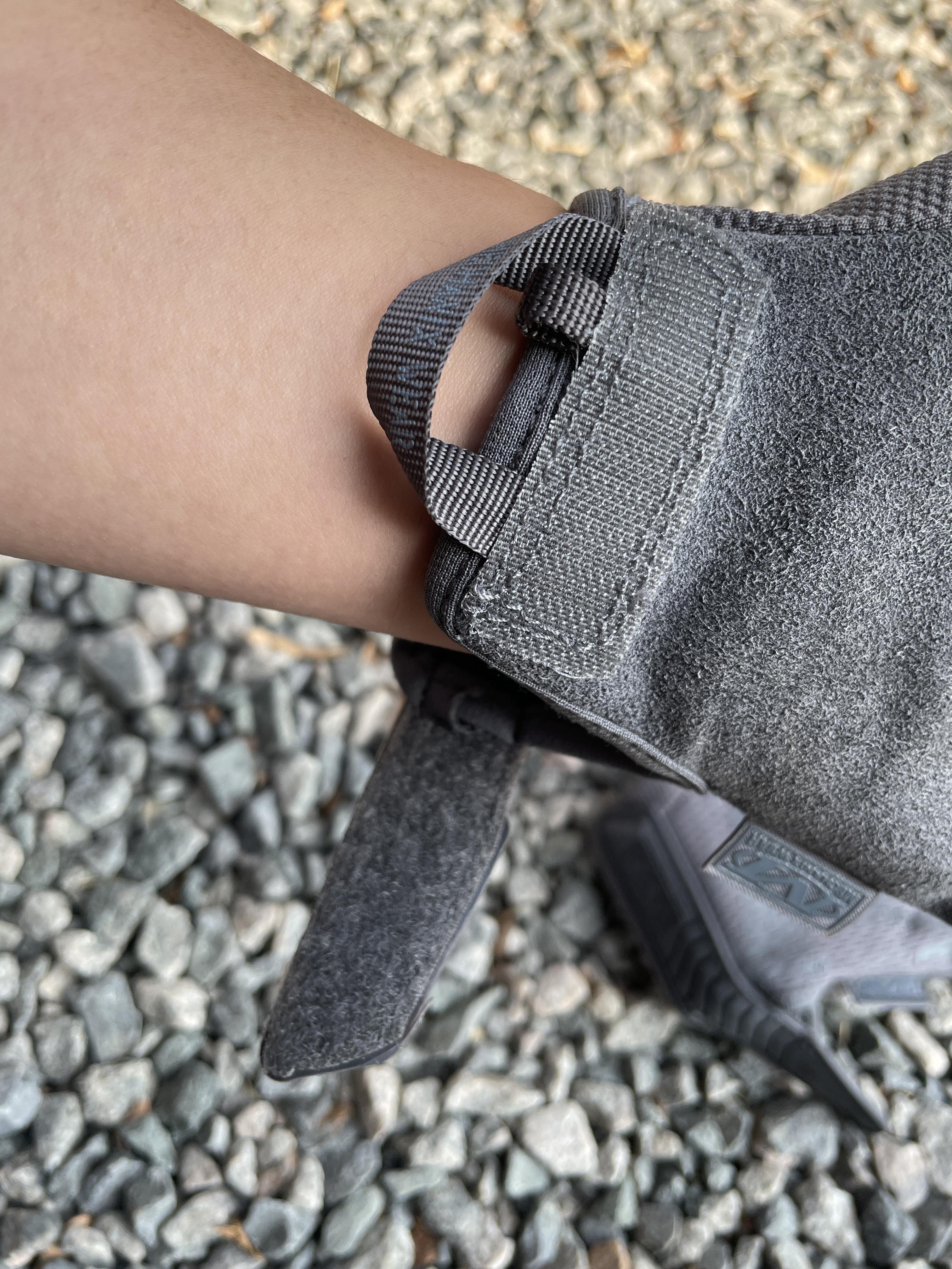 손목에 위치하는 밴드로 마무리하여 착용해주시면 되고. 풀어서 착용할 수 있는 글러브 타입이라서 끼우고 벗는 과정이 매우 편하다는 점.