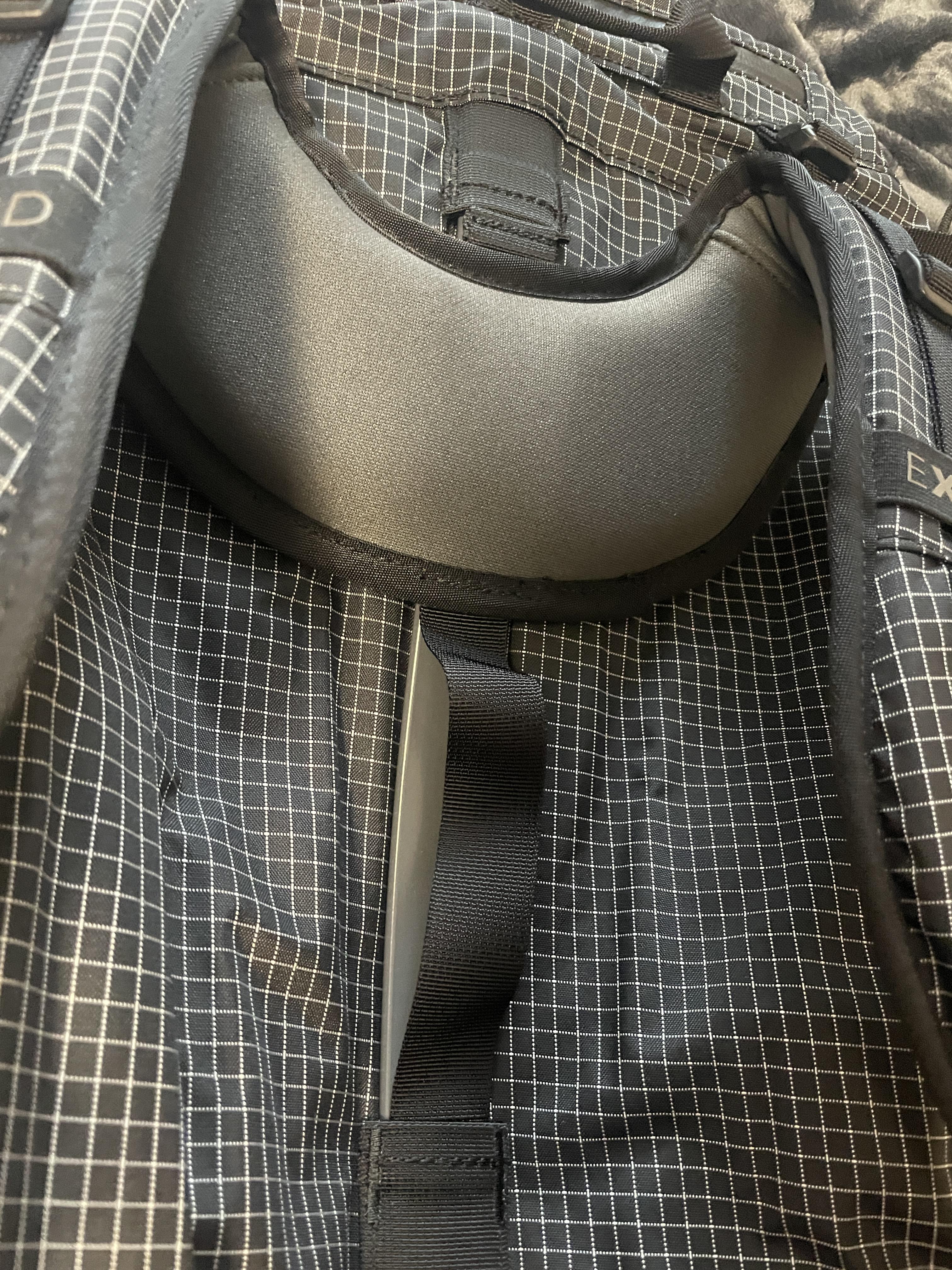 제일 중요한 토르소 부분입니다. 짐의 무게를 알루미늄 스테이 부분이 척추 쪽 가해지는 부담을 덜어준다고 해요. 토르소 부분은 S, M L로 조절이 가능합니다 :)