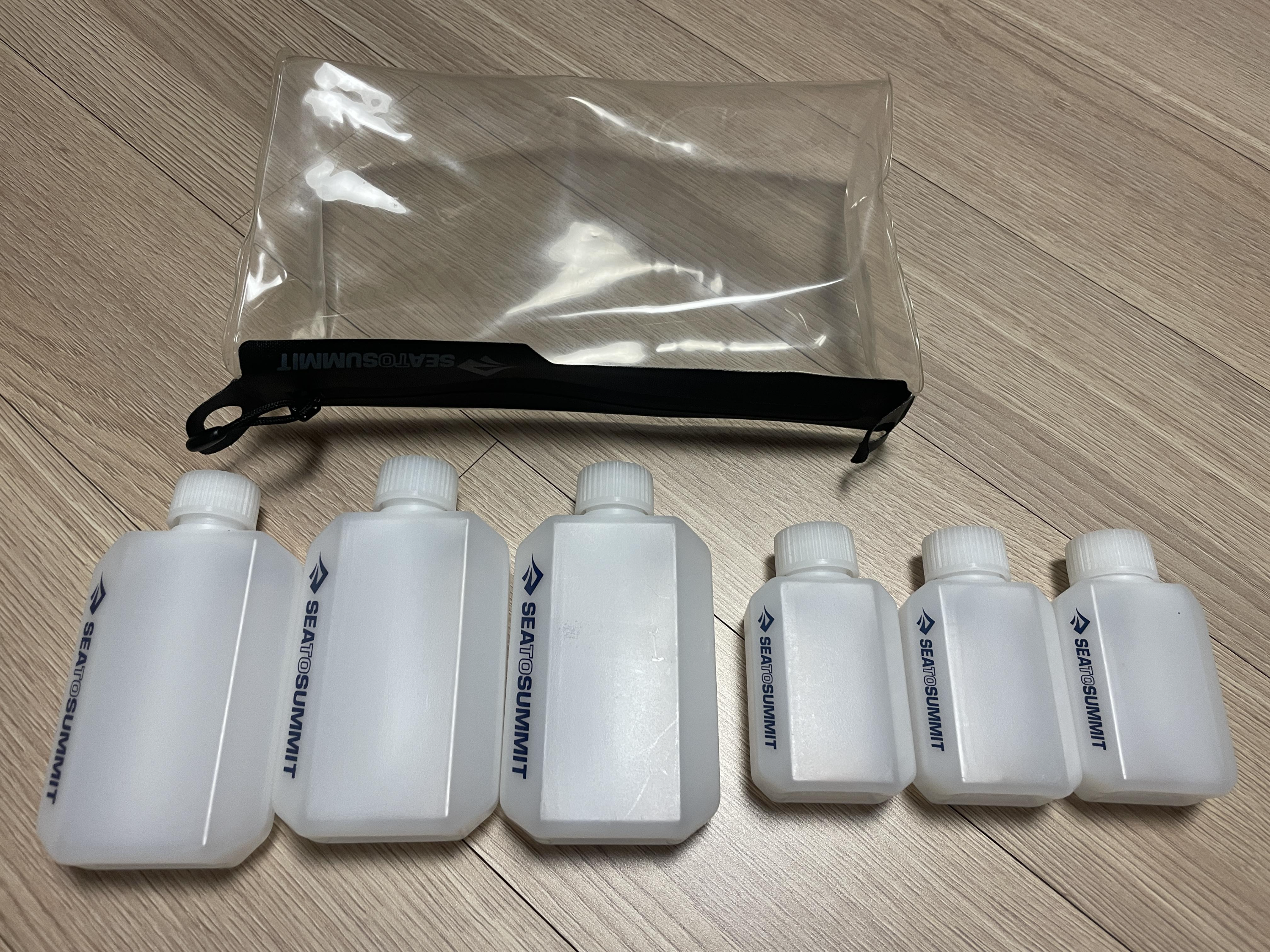 씨투써밋 세면백입니다. 파우치는 TPU 재질로 되어 있는데 TPU재질이면서 조금 더 부드러운 느낌이네요. 내부에는 100㎖ 보틀 3개, 50㎖ 3개 총 6개의 용기가 포함되어 있습니다. 가격은 2만 원 정도에 형성되어 있어요. 캠핑용도 및 사우나에 갈 때 사용하려고 구매했습니다. 굳이? "네 굳이" ㅋㅋㅋ