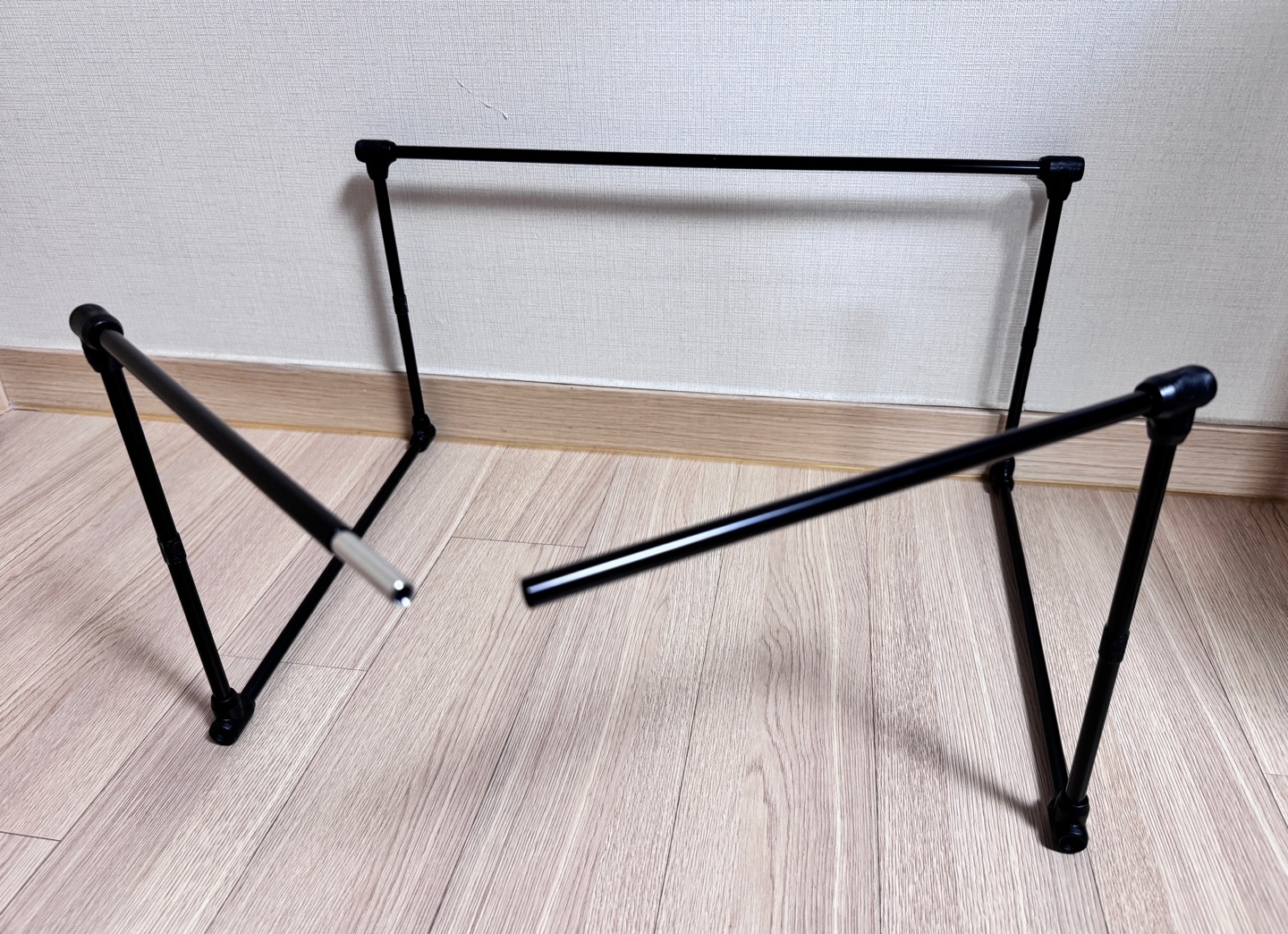 폴대 내부 탄성끈의 방향에 따라 뼈대를 조립해 줍니다.