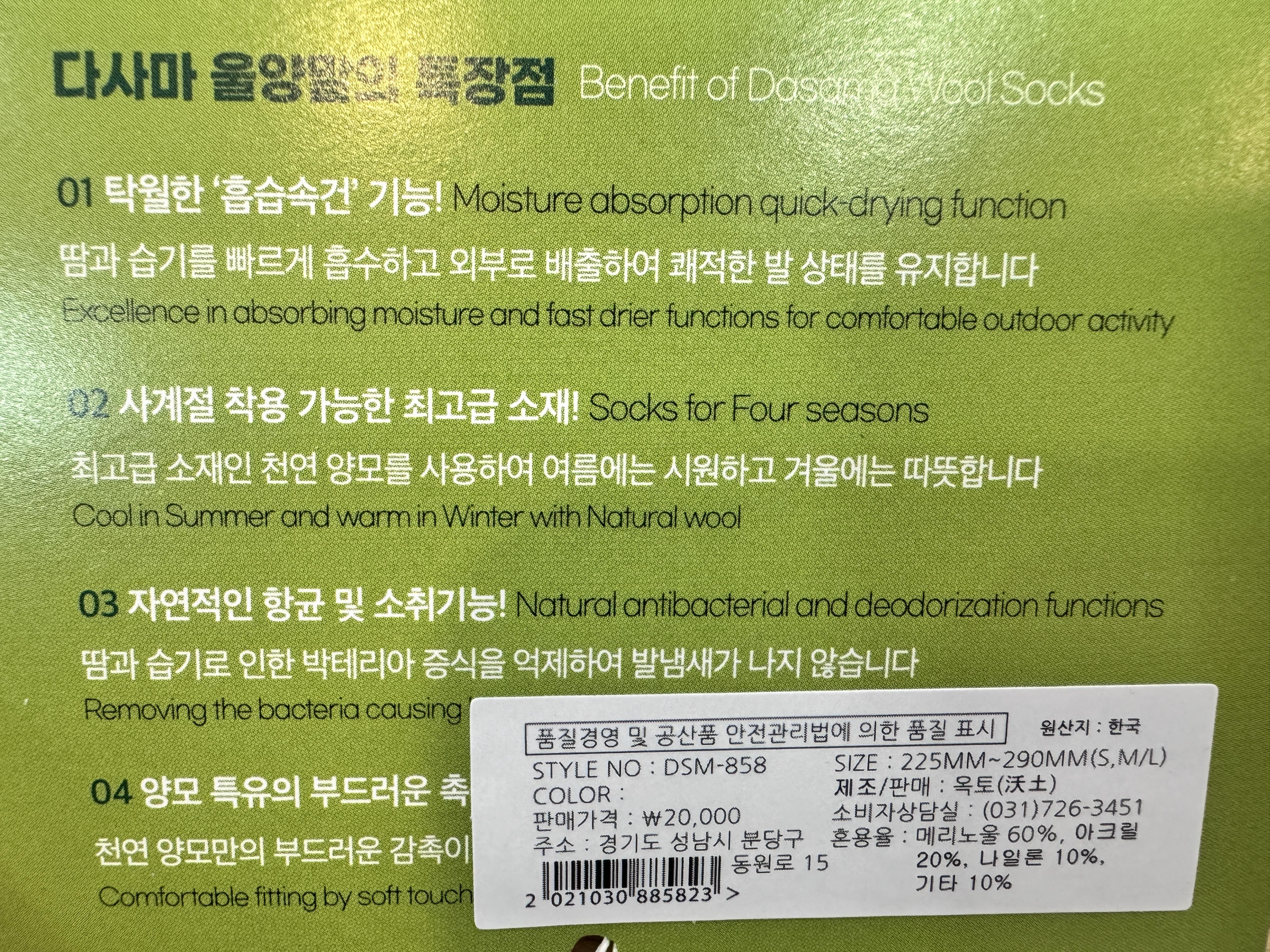 모두 출충한 울 양말 인것 같네요